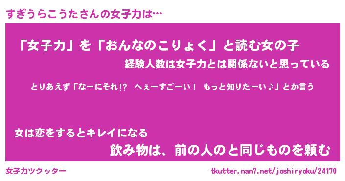 すぎうらこうたさんの女子力をツクッター!