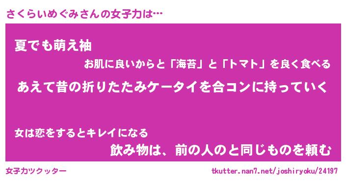 | 胡散臭い通販商品みたいなあだ名 | 『必ず成功するブレスレット…その名も「さくらいめぐみ」』 |