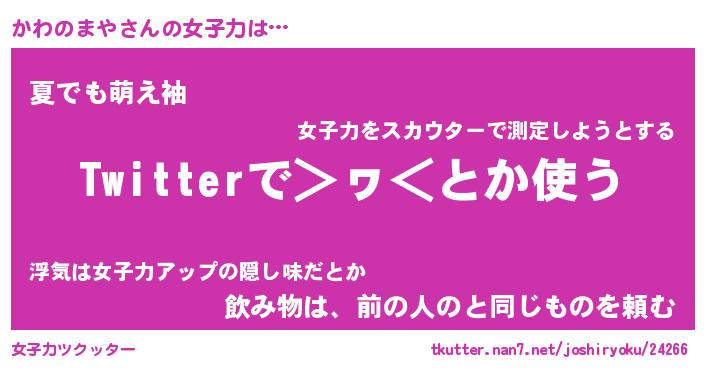 | ファンタジー風あだ名 | 『カワフェル』『エターナルカワノマヤー』 |