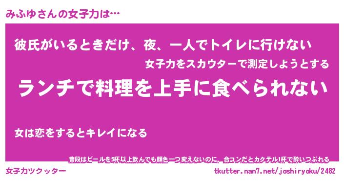 | ヘコむあだ名 | 『みふもー』『つくし』『みふぷりん』 |