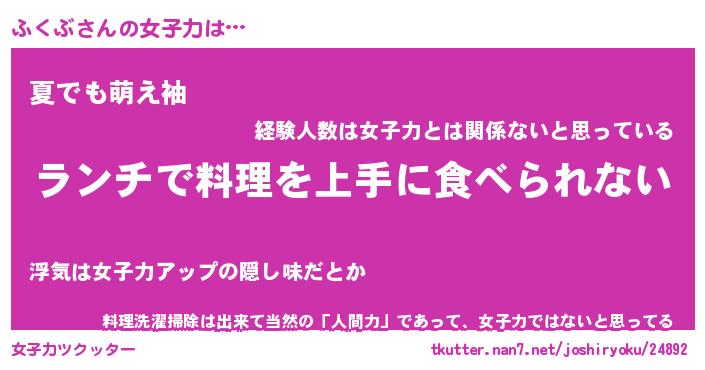 | ヘコむあだ名 | 『ふくもー』『なまこ酢』『ふくを』 |