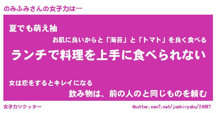 | ヘコむあだ名 | 『のみにゅー』『なまこ酢』 |