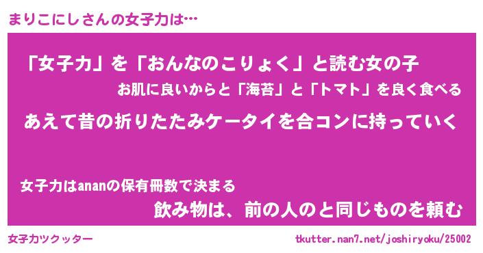 | ファンタジー風あだ名 | 『マリフェル』『エターナルマリコニシー』 |