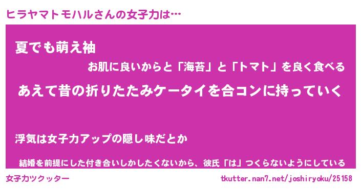 | ヘコむあだ名 | 『ヒラもー』『酢こんぶ』『ヒラを』 |
