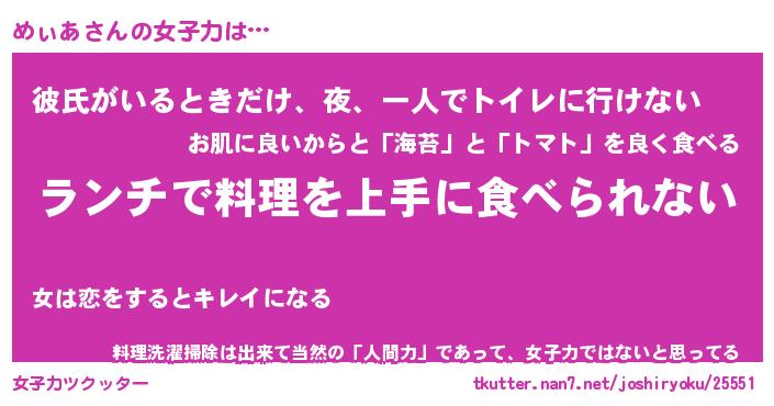 | ヘコむあだ名 | 『めぃにゅー』『酢こんぶ』 |