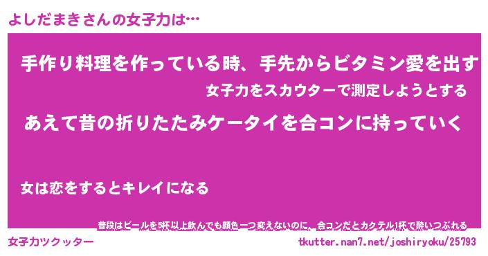 | ヘコむあだ名 | 『よしにゅー』『つくし』 |