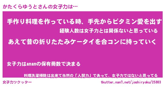 | ヘコむあだ名 | 『かたにゅー』『牛乳』『かた太郎』 |
