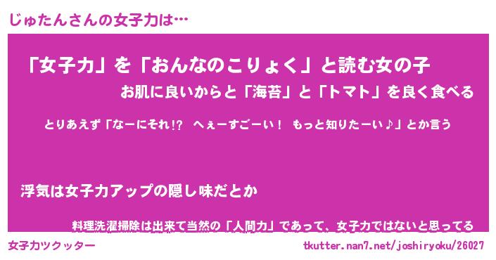| ヘコむあだ名 | 『じゅにー』『なまこ酢』『じゅっ子』 |