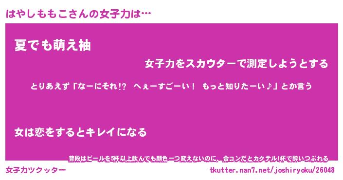 | 伝説のあだ名 | 『不死鳥のスナイパーはやしももこ』 |