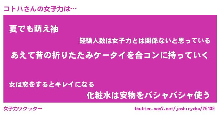 | ヘコむあだ名 | 『コトっふぃ~』『なまこ酢』 |