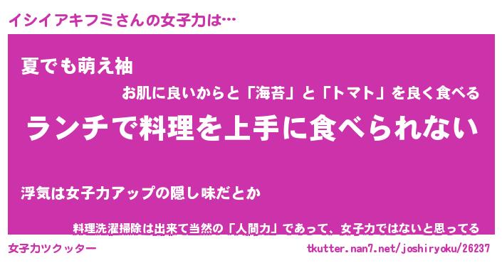 | ヘコむあだ名 | 『イシっふぃ~』『なまこ酢』 |