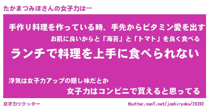 | 恥ずかしいあだ名 | 『プリティーたかまつみほ』『たかっちょ』 |