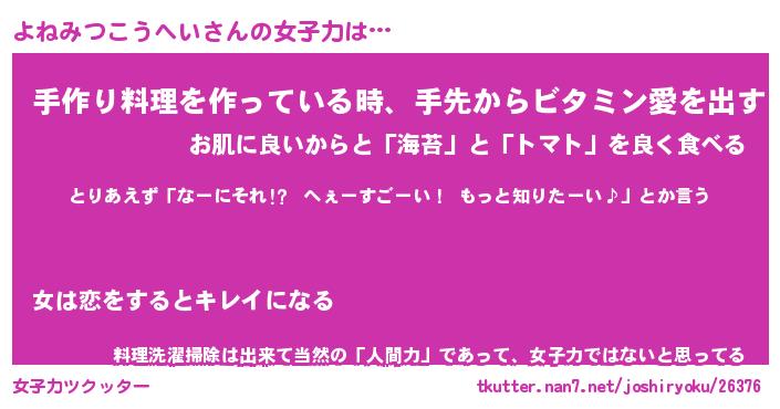 | 女子向けラノベタイトル風あだ名 | 『よねみつこうへい姫と円卓の騎士』 |