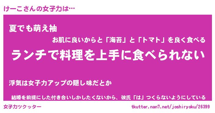 | ヘコむあだ名 | 『けーふぇ~』『なまこ酢』 |