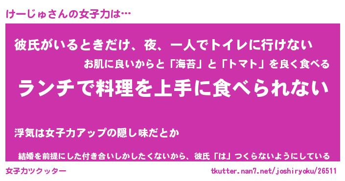 | 恥ずかしいあだ名 | 『プリティーけーじゅ』『けーっちょ』 |