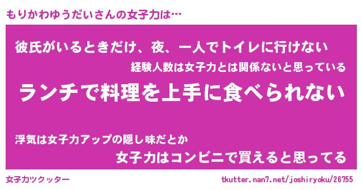 | ヘコむあだ名 | 『もりっふぃ~』『豆乳』『もり太郎』 |