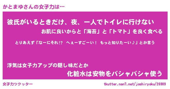 | 意味不明あだ名 | 『ペロリンかとまゆ』『永久保存かとまゆ』 |
