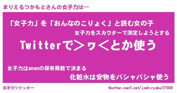 | 男性向けラノベタイトル風あだ名 | 『まりえるつかもとの憂鬱』 |
