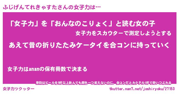 | ヘコむあだ名 | 『ふじふぇ~』『酢こんぶ』『ふじお』 |