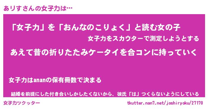 | 恥ずかしいあだ名 | 『プリティーあリす』『あリっちょ』 |