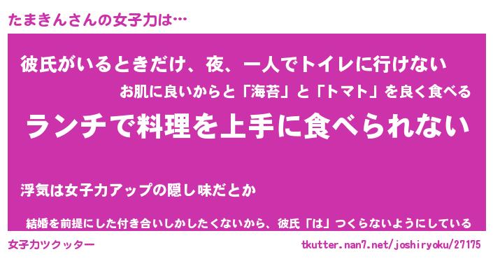 | ファンタジー風あだ名 | 『タマフェル』『エターナルタマキンー』 |