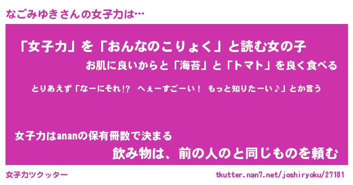 | ポケモン風あだ名 | 『ナゴチュウ』『ナゴミダネ』 |