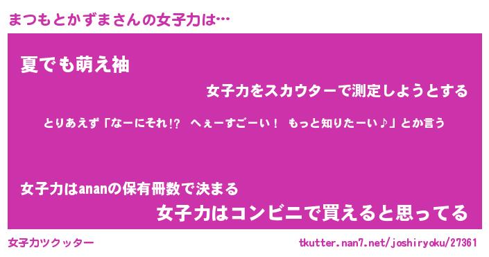 | ヘコむあだ名 | 『まつにー』『なまこ酢』『まつ太郎』 |