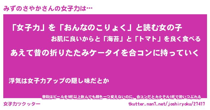 | 胡散臭い通販商品みたいなあだ名 | 『必ず成功するブレスレット…その名も「みずのさやか」』 |
