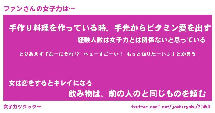 | ヘコむあだ名 | 『ファにゅー』『つくし』『ファ太郎』 |