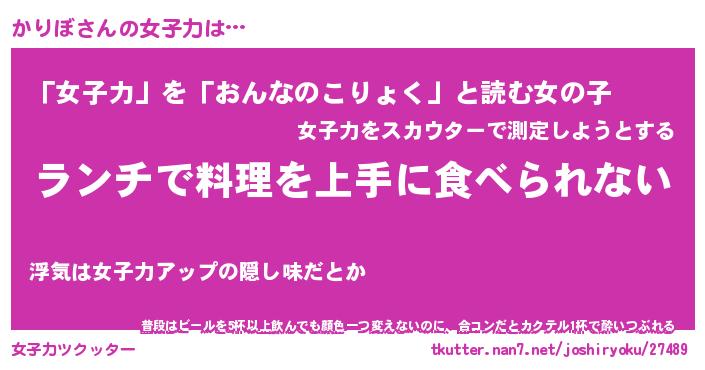 | 恥ずかしいあだ名 | 『プリティーかりぼ』『かりっちょ』 |