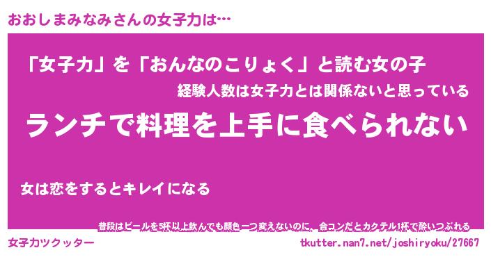 | 胡散臭い通販商品みたいなあだ名 | 『億万長者になれるブレスレット…その名も「おおしまみなみ」』 |