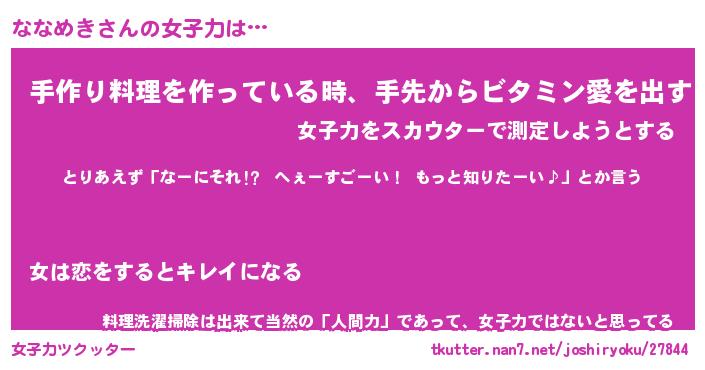 | ヘコむあだ名 | 『ななもー』『つくし』『ななを』 |