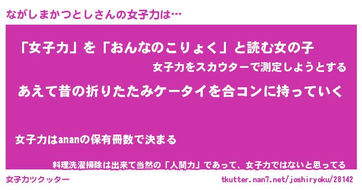 | 女子向けラノベタイトル風あだ名 | 『(仮)ながしまかつとしのやんごとなき事情』 |