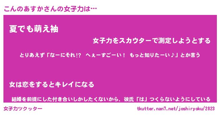| 胡散臭い通販商品みたいなあだ名 | 『億万長者になれる水晶球…その名も「こんのあすか」』 |