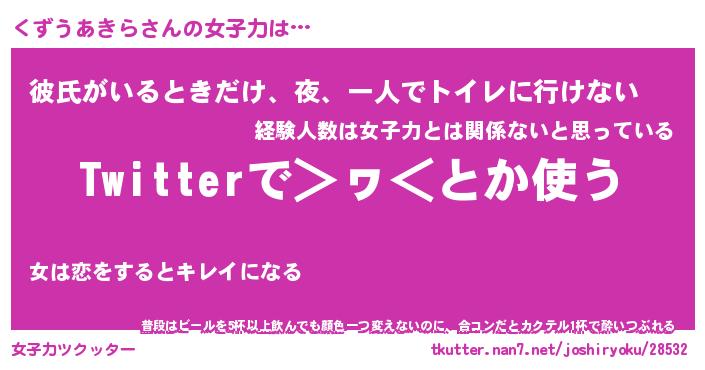 | 女子向けラノベタイトル風あだ名 | 『(仮)くずうあきらのやんごとなき事情』 |