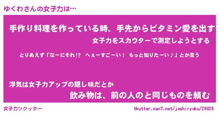 | ファンタジー風あだ名 | 『ユクフェル』『エターナルユクワー』 |