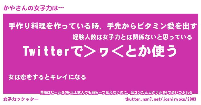 | ファンタジー風あだ名 | 『カヤフェル』『エターナルカヤー』 |