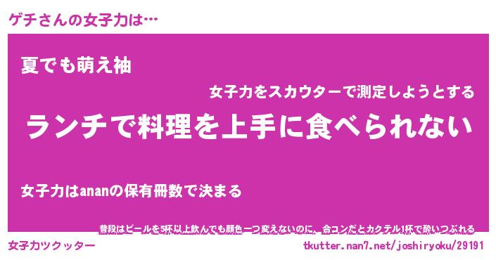 | ヘコむあだ名 | 『ゲチにゅー』『つくし』『ゲチっ子』 |