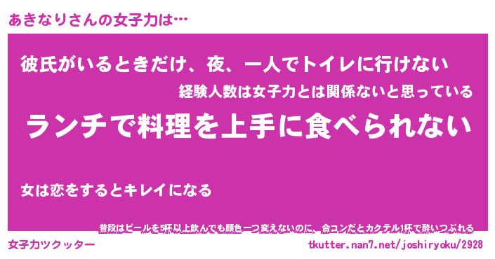 | ヘコむあだ名 | 『あきっふぃ~』『牛乳』『あき太郎』 |