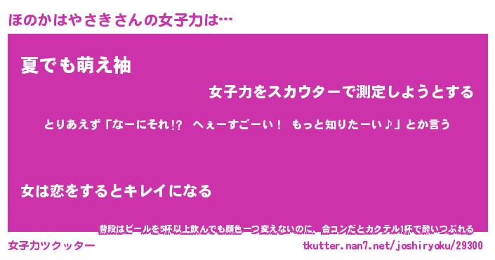 | 胡散臭い通販商品みたいなあだ名 | 『モテモテ間違いなしブレスレット…その名も「ほのかはやさき」』 |