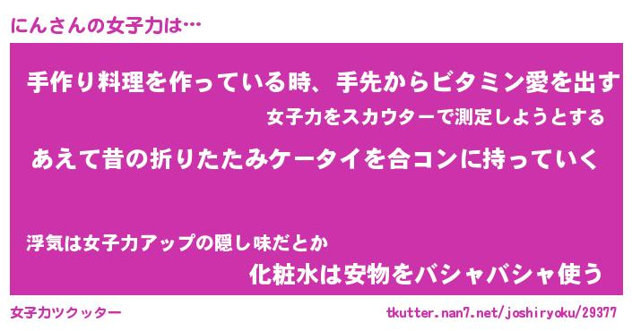 | 胡散臭い通販商品みたいなあだ名 | 『必ず成功する霊験あらたかなお札…その名も「にん」』 |
