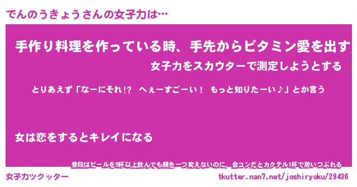 | 恥ずかしいあだ名 | 『プリティーでんのうきょう』『でんちん』 |