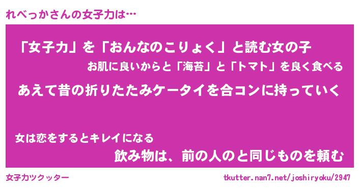 | 恥ずかしいあだ名 | 『プリティーれべっか』『れべっちょ』 |