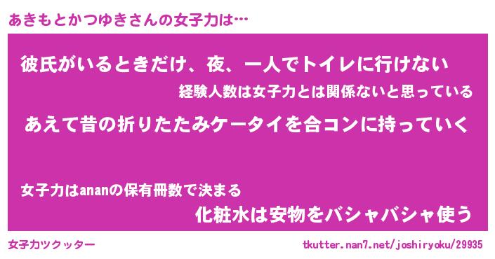 | ヘコむあだ名 | 『あきっふぃ~』『豆乳』『あきを』 |