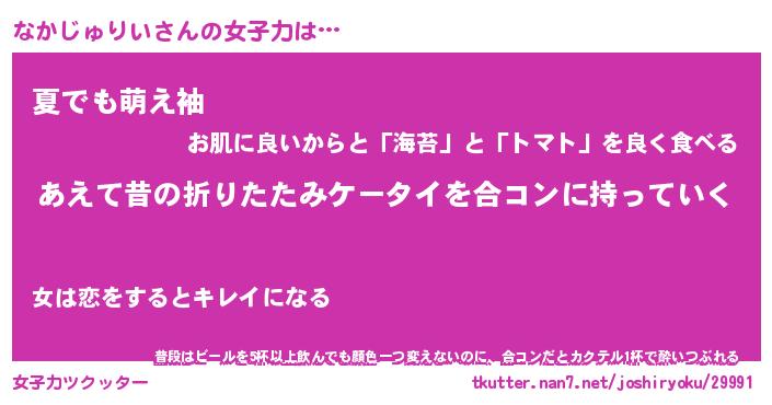 | 恥ずかしいあだ名 | 『プリティーなかじゅりい』『なかっちょ』 |