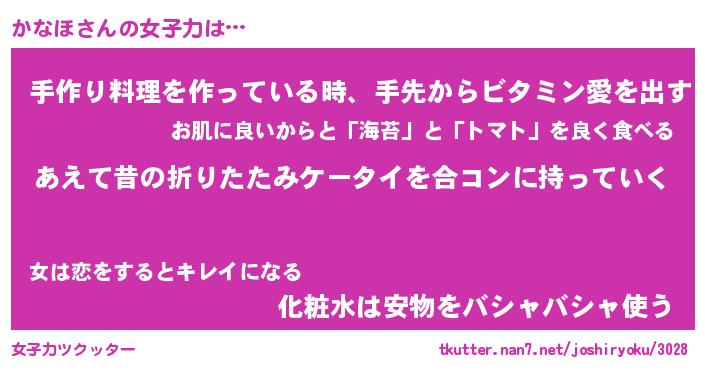 | ヘコむあだ名 | 『かなふぇ~』『なまこ酢』 |