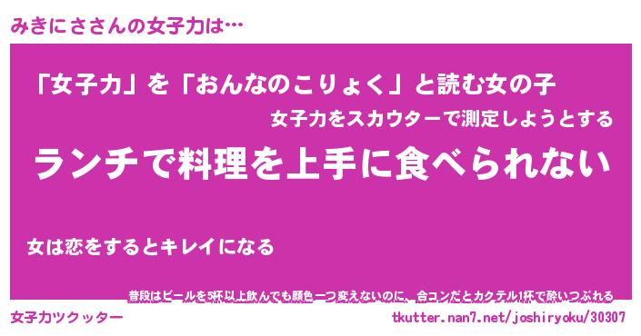 | ヘコむあだ名 | 『みきにー』『つくし』『みきっ子』 |