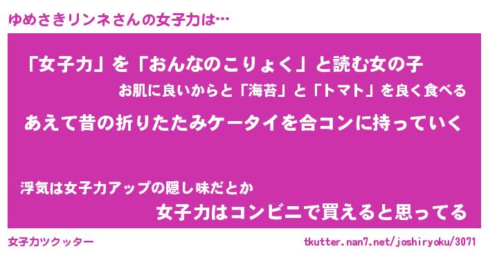 | 恥ずかしいあだ名 | 『プリティーゆめさきリンネ』『ゆめちん』 |
