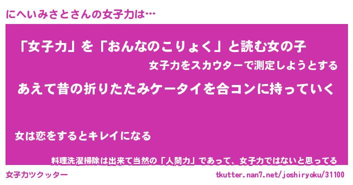 | 女子向けラノベタイトル風あだ名 | 『(仮)にへいみさとのやんごとなき事情』 |