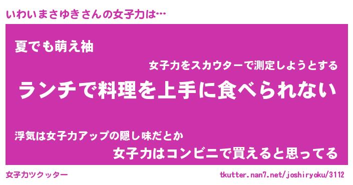 | ヘコむあだ名 | 『いわっふぃ~』『酢こんぶ』 |